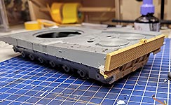 Dann geht es an den Bau der massiven Zusatzpanzerungselemente an den vorderen Wannenseiten, Bug und Glacisplatte.