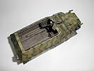 Nachdem die Frontsichtklappen für Fahrer und Beifahrer innen nicht strukturiert sind, habe ich die Sehschlitze geöffnet. Obwohl vor dem Beifahrerplatz der Einbau eines Funkgerätes erfolgt lauf Bauanleitung verzichtete ich vorerst auf die Montage einer Antenne nebst Sockel, da auf den Originalfotos keine Antenne zu sehen war. Kann und soll jeder halten, wie er will.