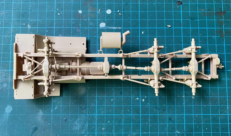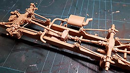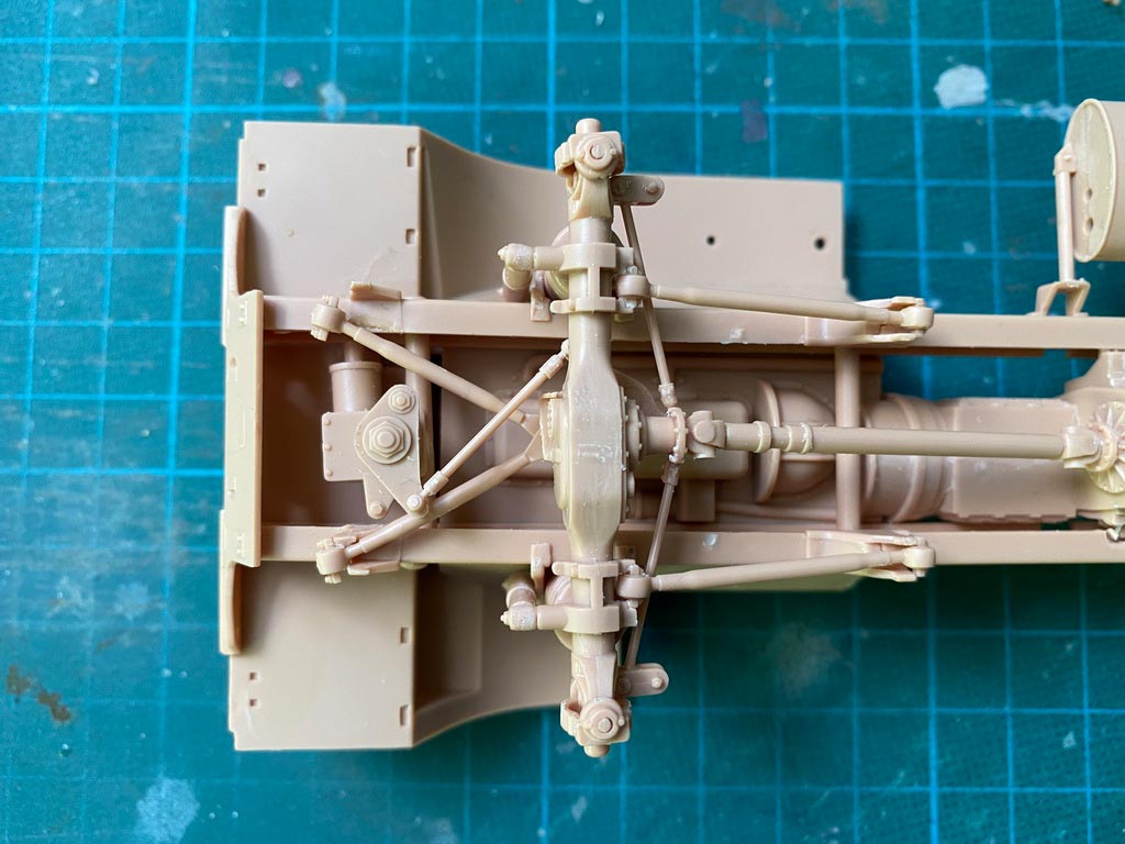 Der Bau dieses Bausatzes beginnt, wie so häufig bei Radfahrzeugen mit dem Bau des Chassisrahmens und der Achsen.