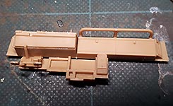 Das Oberteil der Fahrerkabine wird mit der Kabinenrückwand versehen und dann kann man schon die Bodenplatte einkleben. Überflüssig zu erwähnen, dass man hier unbedingt auf den exakten Sitz aller Flächen zueinander achten muss, damit keine Verkantungen und Spalten entstehen.