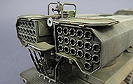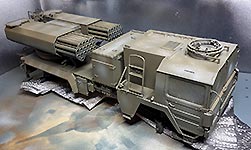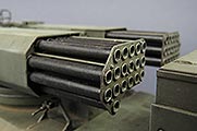 Auch auf der anderen Seite ist es etwas unschön, denn hinten sind die jeweils 18 Öffnungen der Werferrohre geschlossen in der Rückwand dargestellt, also quasi voll beladen - ein bisschen schade, dass man hier nicht Teilbeladungen darstellen kann mit eben auch unbeladenen Rohren für Darstellungen während des Schuss' oder beim beladen.