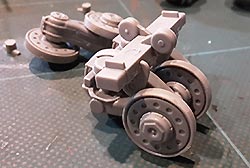 Dies ist insofern reizvoll als dass die Kette auch voll beweglich bleibt und das Laufwerk somit sich etwaigen Bodenunebenheiten auf einer Dioramenplatte anpassen kann.