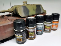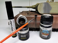 Im Anschluss begann die Alterung mittels Ölfarben. Hier nutzte ich fast mein ganzes Sortiment an Oilbrushern, Washings und Streakings in den verschiedensten Farbtönen aus dem Sortiment von Ammo by Mig.