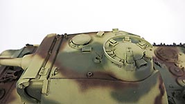 Der Turm setzt sich auch aus nur wenigen Teilen zusammen - im Grunde aus dem Turmoberteil der Rückwand, der Kanonenblende und dem Unterteil. Die Darstellung der Details ist hier wirklich schön. Bei den Kanonenblenden gibt es die Auswahl zwischen normaler und der Kinnblende. Beide mit schöner Gussstruktur. Auf dem Turmdach gibt es nur wenige Kleinteile anzubauen. Was besonders durchdacht ist, sind die Abdeckbleche der Winkelspiegel an der Kommandantenkuppel. Diese liegen als ein Bauteil bei, das aufgeklebt wird und nach trocknen des Klebers das verbindende Angussstück abgetrennt werden kann. Das spart ebenfalls Zeit und Nerven. Die Luke der Kommandantenkuppel ist einzeln und kann daher offen oder geschlossen gebaut werden.