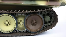 Ohne Trockenpause ging es nach einer oberflächlichen Reinigung der Airbrush mit dem Olivgrün 20079 weiter. Auch hier wurden die Laufrollen mit bemalt, die gleiche Vorgehensweise wie bei den braunen Laufrollen.