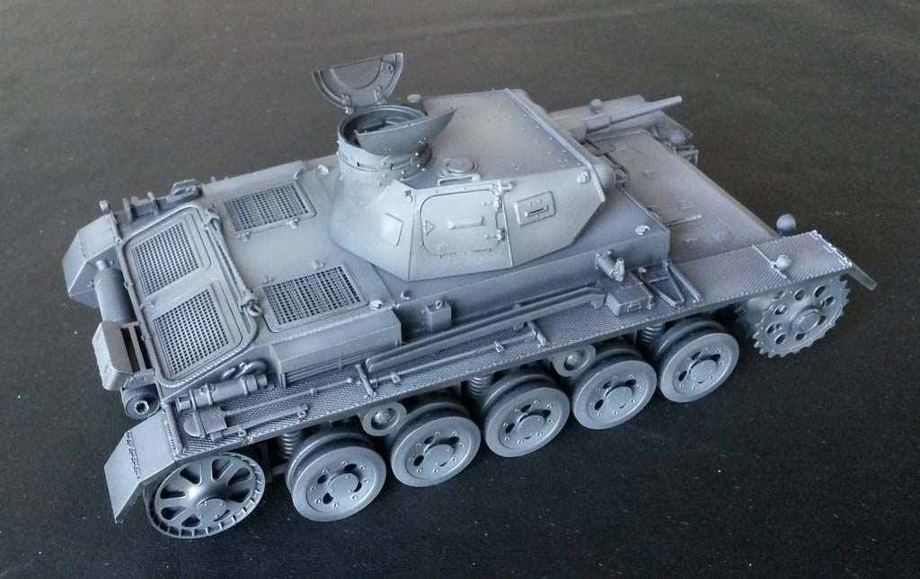 Ein toller Bausatz, der diese besondere Ausführung des Panzer III sehr schön darstellt. Fein detailliert und sauber. Der Zusammenbau per se ist nicht schwierig, da die Passgenauigkeit gut ist, aber die Teileanzahl und das Aufbrechen einiger Bauteile in zu viele unnötige Kleinteile, bremst den Spaß und die Baugeschwindigkeit etwas aus, wobei man fairerweise sagen muss, dass der Teilewahnsinn hier nicht so ausgeprägt ist wie in diversen anderen Bausätzen von Bronco.