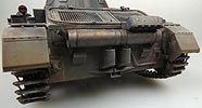 Aber das ist erstmal relativ aufwändig - die Kettenbleche allein müssen mit den einzelnen Kettenblechhalterungen, die Front- und Heckklappen, sowie ein Haufen Kleinteile angebaut werden. Die Klappen können hoch- oder runtergeklappt angebaut werden.