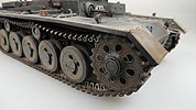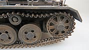 Die Stützrollen, Leit- und Treibräder werden ebenfalls zusammengebaut und dann an der Wanne angebaut. Die Stifte der Schwingarme auf denen die Laufrollen sitzen sind ein wenig klein geraten, sodass die Räder ein wenig wackelig sitzen und man beim Ankleben genau achtgeben muss, dass die Räder nachher alle in einer Flucht stehen.