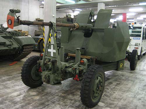 Vorderer Balken der Unterlafette mit Erdnagel links vorn und Steckdose