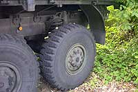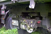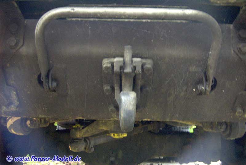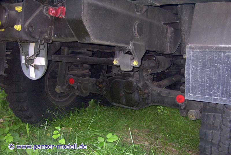 Blick von Links auf Achs-, Lenk und Antriebsgestänge hinten |
