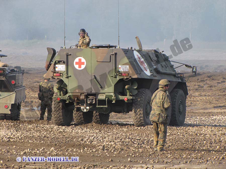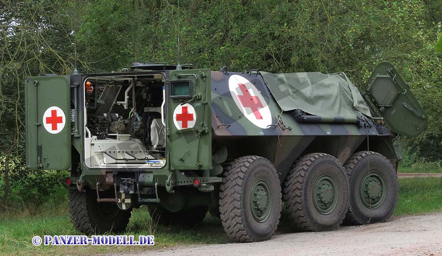Mit dem EBS "Sanitätsgruppe" wird der Fuchs zu einem gepanzerten Krankenkraftwagen (KrKw) ausgerüstet. Mit ihm können bis zu vier liegende oder zwei liegende und vier sitzende Verwundete sowie ein Sanitätssoldat zur Versorgung transportiert werden. Die Halterungen entsprechen dem NATO-Standard, was die Aufnahme entsprechenden Geräts anderer Armeen ermöglicht. Gemäß der Genfer Konvention ist das Fahrzeug unbewaffnet.