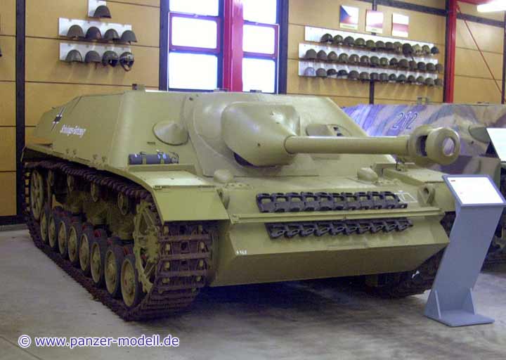 Anfang 1943 wurde eine Versuchsserie eines neuen Jagdpanzers aufgelegt, deren auffälliges Merkmal gegenüber der späteren Serienproduktion die runden Ecken des vorderen Aufbaus sind. Die Wannenfront wurde gegnüber dem Panzer IV überarbeitet und mit anderen Winkeln versehen - 60mm in 45 Grad an der oberen Platte und 50mm in 55 Grad.