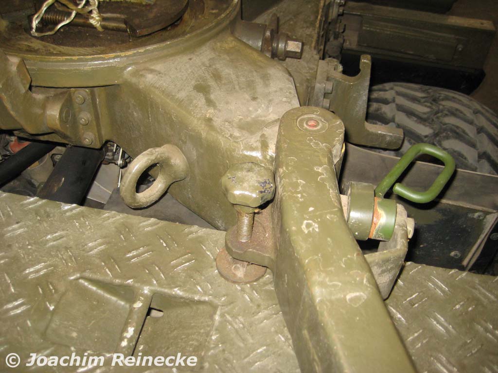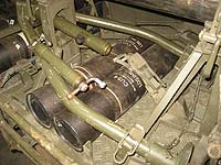 Verzurrtes Mörserrohr von links
