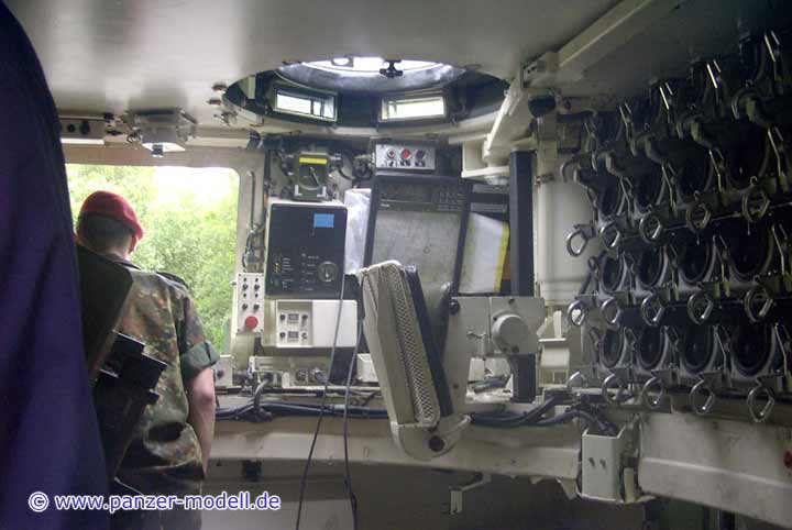 Blick von rechter Turmklappe auf hinteren Munitionsstauraum.