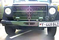 Tarnscheinwerfer und Mehrtonsignalhörner linke Seite Stoßstange |