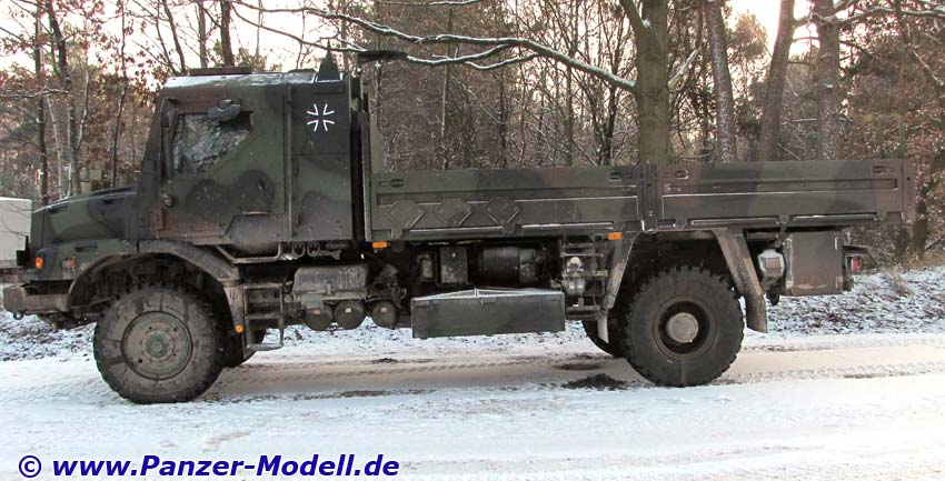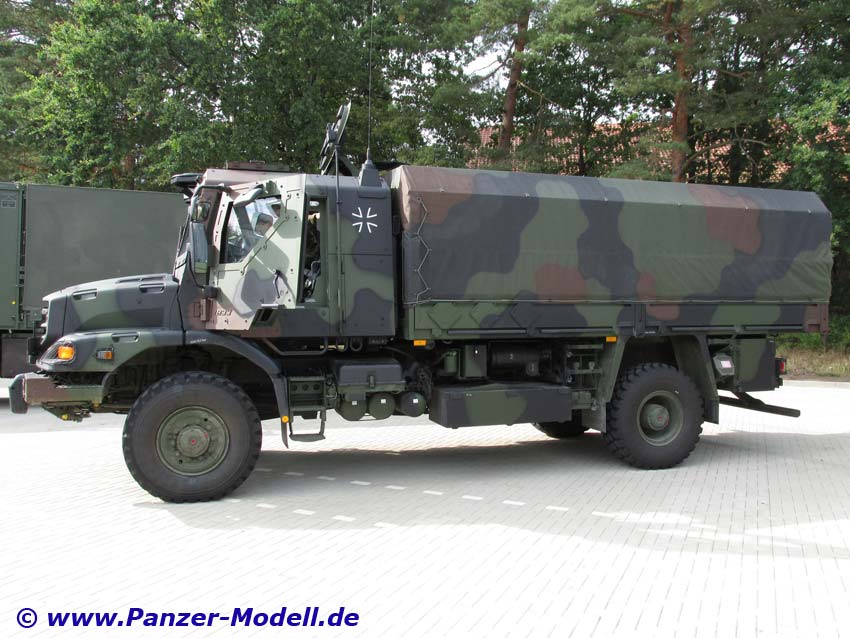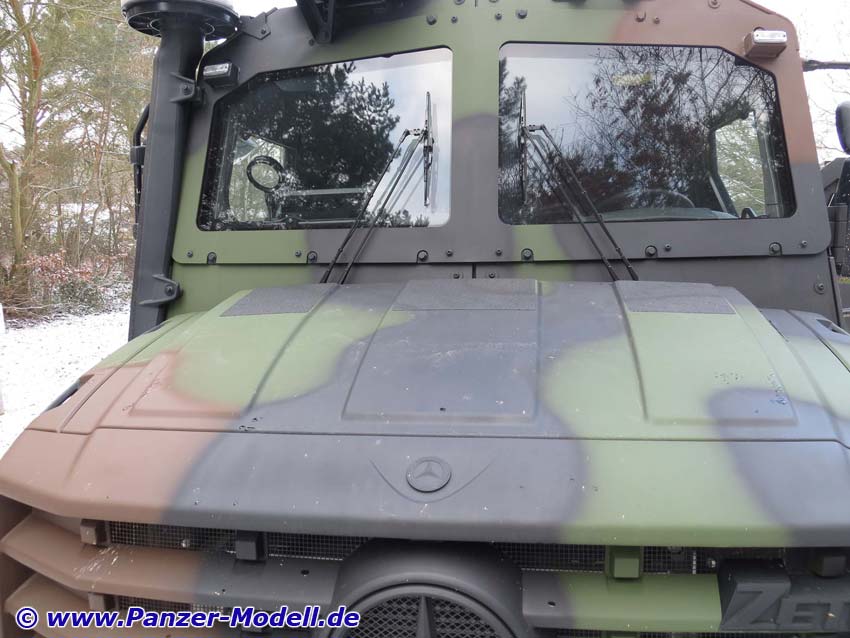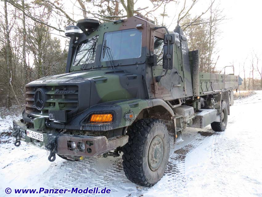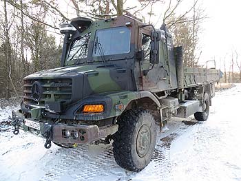 Der Mercedes Benz Zetros 5t mit geschützter Fahrerkabine schließt eine wichtige Lücke im Fähigkeitsprofil der geschützten Logistikfahrzeuge der Bundeswehr und soll nach und nach die modular nachgepanzerten Fahrzeuge ersetzen.