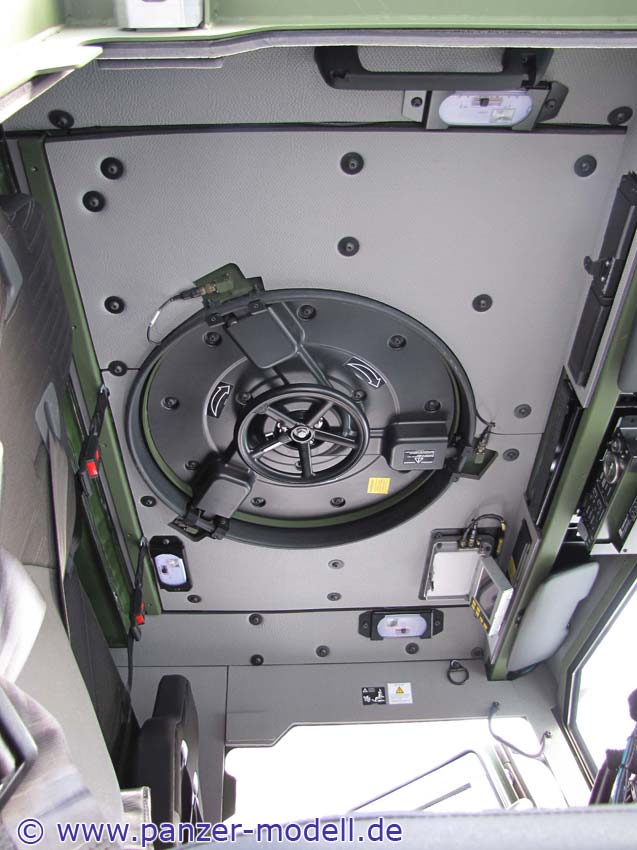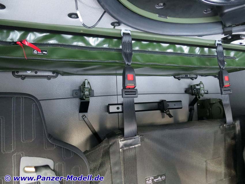 Das Fahrzeug ist von vorherein gut ausgerüstet, bzw. für die Einrüstung vorbereitet. So ist neben stadardmäßigem Sprechfunk ebenso Satcom und Tetrapol vorgesehen, die Basis zur Einrüstung einer von innen bedienbaren FLW100 mit MG3 ist ebenfalls bereits angebaut und ein Infrarotscheinwerfer mit Fahr- und Fernlicht ist bereits installiert. Die gepanzerte Kabine bietet der Besatzung Schutz vor Beschuss, Splitter, Minen und IED nach STANAG 4569 und AEP 55. Eine ABC-Schutzbelüftungs- und eine Klimaanlage sind selbstverständlich integriert.