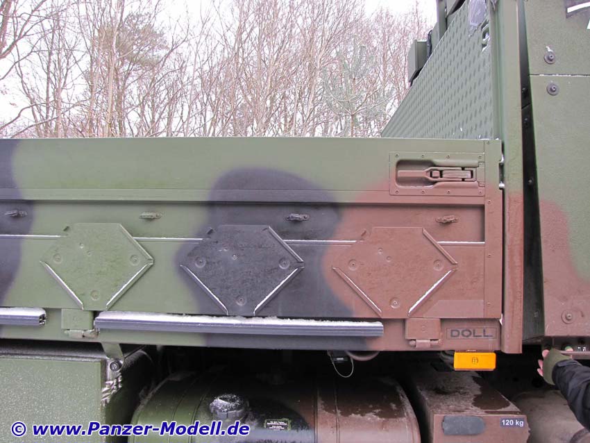 Der Ladeaufbau und Staukistenkonzept stammt aus dem Hause Doll. Die Nutzlast beträgt rund 5t beim Fahrzeug ohne Winde, das Fahrzeug mit Winde verfügt über rund 300kg weniger Nutzlast. die Ladefläche bietet eine nutzbare Fläche von 5,10m x 2,50m.