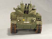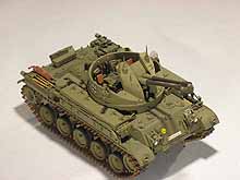 Die Abmessungen von AFV- und Tamiya harmonierten zum Glück ganz gut. Weil das Tamiya-Heck, -vermutlich wegen der motorisierten Modellvariante-, zu hoch ist, musste zwischen Turmkranz und Motordeck der entstehende Spalt in Länge (4 mm) und Höhe ( 2mm) ein wenig geflickt werden.
