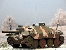 das Modell zeigt einen Hetzer, der zu einem Flammpanzer umgebaut wurde. Insgesamt wurden 20 Hetzer zu Flammpanzer umgebaut. Dieses Fahrzeug war Anfang 1945 an der Westfront im Einsatz und wurde von den Amerikanern erbeutet.