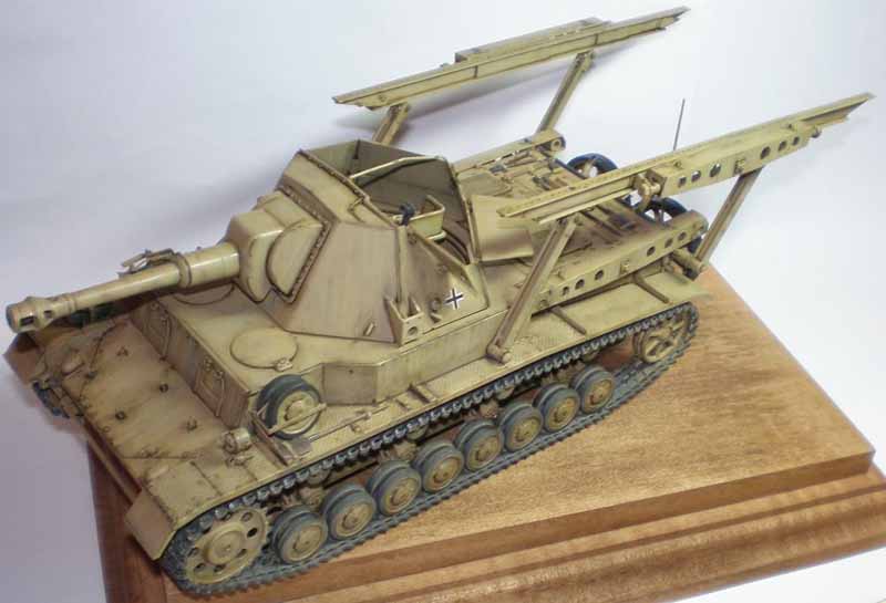 Der Bausatz ist von Dragon (6439), im Maßstab 1:35. Farben: Tamiya XF 60 ( 40%) + XF 57 ( 40%) + weiß 20%. Patina: Mit Ölfarben und verstaubt mit Tamiya Buff XF57 und Humbrol 26.
