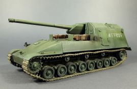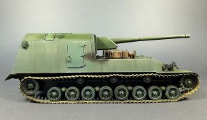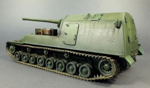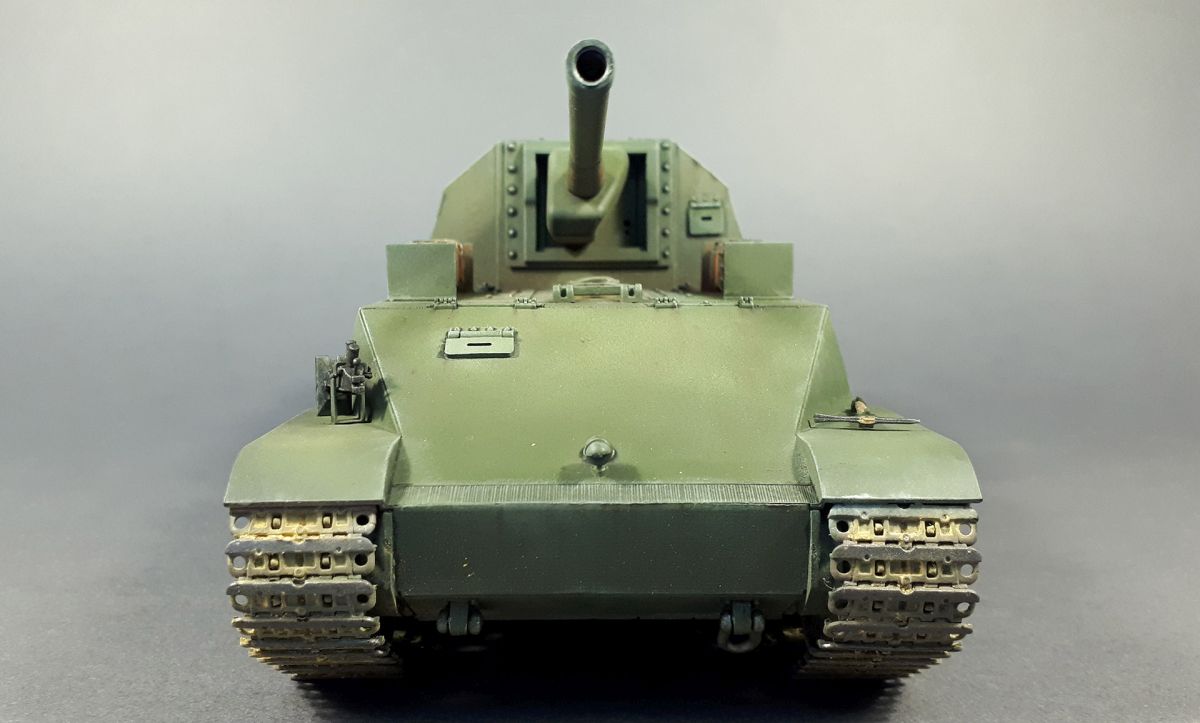 Grundbemalung mit Tamiya XF-13 IJA green, ein bisschen Streaking mit Amig Streaking grime, washing dezent mit Amig 1005 Dark brown wash for green vehicles und trockenmalen mit hellolivgrüner Ölfarbe, gemischt aus Abt502 Farben. Ketten und Auspuff mit Amig 045 gun metal, nachbearbeitet mit verschiedenen Rostpigmenten.