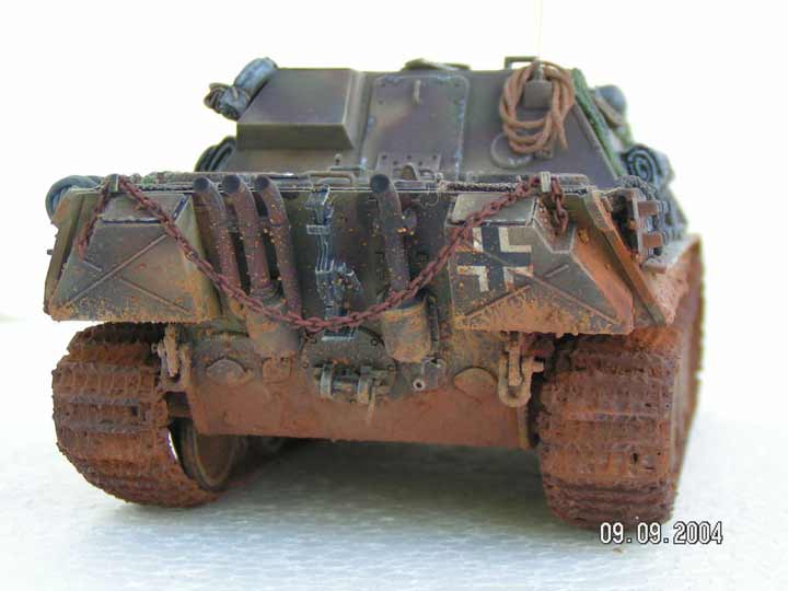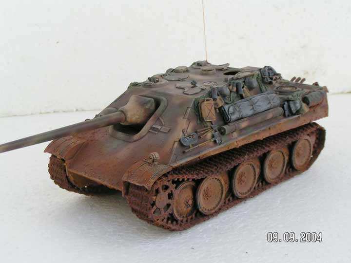 Erbauer: Michael Bauch Jagdpanther (frühe Ausführung - Normandie 44) .Das Modell ist von Revell - gebaut im wesentlichen "straight from the box" , das Zubehör für den Combatlook kommt von Verlinden und Plus Model.