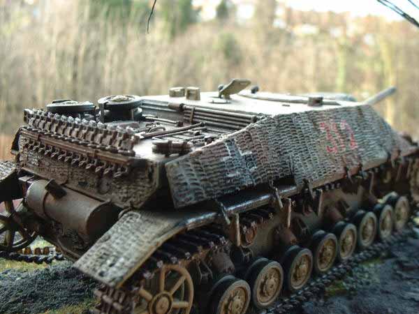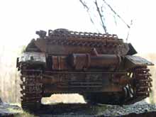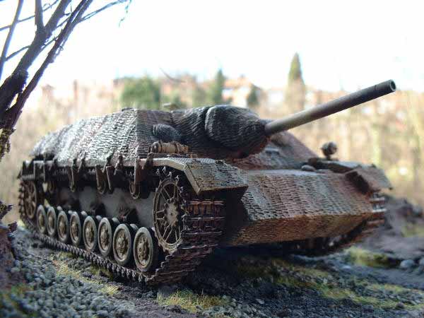 Dies ist der Revel Jagdpanzer IV von Nik Bird. Das Modell wurde ergänzt durch Aber Ätzteile und ein Jordi Rubio Rohr. Das Zimmerit wurde mit Milipu und einem 5mm Schraubenzieher gemacht. Die Bemalung erfolgte mit Mit Ölfarbengrundierung und Tarnstreifen mit Tamiya Farben, abgeschlossen mit einigen washs und Pastellkreiden.