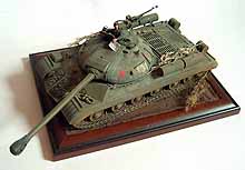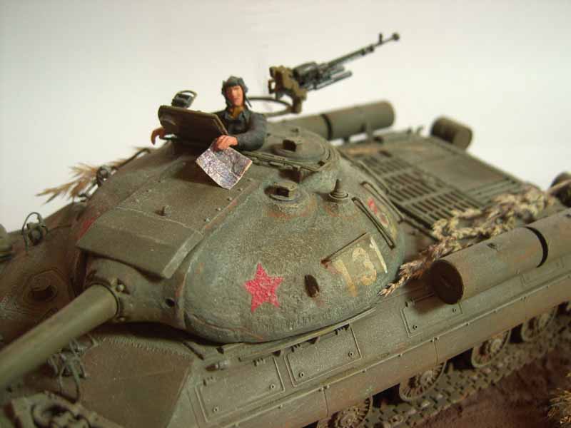 Ein Panzer, der noch während des 2. Weltkriegs geplant und gebaut wurde, allerdings nicht dieser Version, die ist in der Nachkriegszeit entstanden. Es ist das Modell von Trumpeter, super Qualität direkt aus der Box gebaut und der Preis stimmt auch. Vor allem den Turm habe ich mit vielen Schichten gestaltet, wegen der schönen unebenen Struktur. Noch ein paar Roststellen hier und da und die Scheinwerfergitter habe ich selbst aus dünnem Draht gemacht, die sind im Bausatz nicht dabei, gehören aber eigentlich zum Original, obwohl die immer anders aussahen.