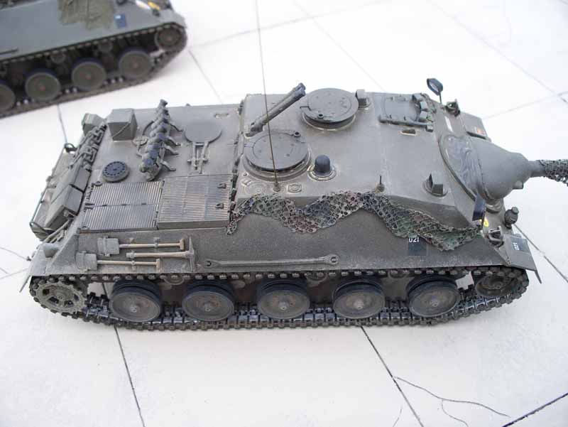 Der Bausatz wurde dem Vorbild entsprechend verändert. Unter anderem wurden die gesamten Fahrwerkslaufrollen gegen die eines Revell-Marders getauscht. Das Heck wurde mit anderen Staukisten versehen die aus Plastikplatten scratchgebaut wurden. Auf dem Panzerdeck wurde ein selbstgebauter Lyranwerfer angebracht, der im Original Leuchtkörper verschießt.