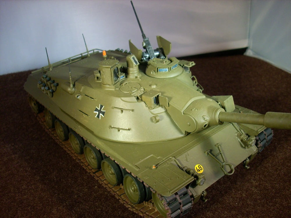 Erbauer: Joachim Koch Der Kampfpanzer 70 war ein gemeisames Projekt von Deutschland und Amerika in den 60er Jahren. Das Besondere an ihm war, der Fahrer saß im Turm, er schaute immer nach vorn, egal wie der Turm geschwenkt wurde. Er hatte eine 152 mm Kanone mit der normale Geschosse sowie Raketen verschossen werden konnten. Das Fahrwerk konnte abgesenkt werden, und zwar vorn und hinten oder auf der ganzen Länge. Das Modell ist wie bei Dragon üblich, von guter Qualität. Es wurde einfarbig gestrichen mit Oliv Drab. (Dragon 3550)