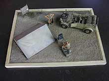 Der Kübelwagen, der hier zu sehen ist, ist aus dem Bausatz zusammengebaut, nur der Motor ist aus einen anderen Tamiya set.