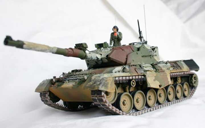 Es handelt sich dabei um den Leo 1 A5 vom PzBtl 413 während einer Übung im CMTC. Da selbige im Winter ablief, hat die Raubkatze eine temporären Winteranstrich erhalten. Hierzu verwand ich dünne weiße Farbe und brachte sie mit einen relativ harten Pinsel auf. Als Vorbildfoto diente mir das Bild aus dem Fahrzeug Profile Band 22.