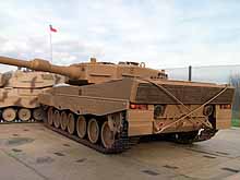 Am 14.11.2007 wurde der erste chilenische Leopard 2 in München vorgestellt. Der südamerikanische Staat bekommt bis 2010 140 von KMW generalüberholte Leopard 2 A4 aus deutschen Beständen und ist somit 16. Nutzernation. Bilder von der Vorstellung im Internet waren für mich Anlass, diese "Nummer 1" als Modell zu bauen. Auch wenn es bessere Bausätze gibt, verwendete ich das alte ESCI-Modell, welches ich aber mit Turm und Ketten von ITALERI ausstattete. Da der Bausatz teilweise schlecht detailliert ist, musste ich, besonders beim Werkzeug, in die Restekiste greifen. Obwohl das Hallenlicht der Originalbilder sicherlich den Farbton verfälschte, mischte ich Revell 88+89 mit ein paar Tropfen 84, bis die Farbe meiner Meinung nach passte.