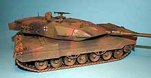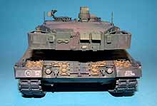 Erbauer: Mike Schmatloch Das Modell zeigt einen Leopard 2A6 von Tamiya. Der Panzer wurde mit Photoätzteilen der Fa. Eduard aufgewertet. Das Modell lackierte ich per Airbrush mit Farben von Revell. Die Ketten habe ich mit der Farbe GunMetal von Tamiya grundiert und anschließend die Kettenpolster mit Matt-Schwarz bemalt.