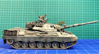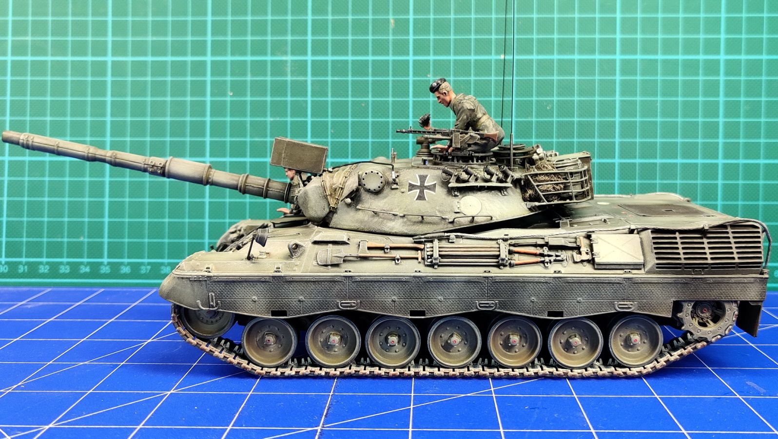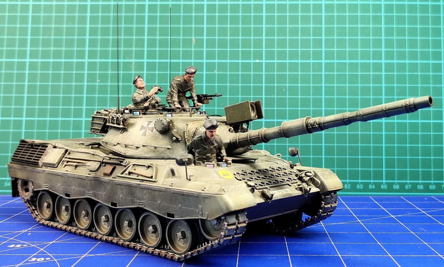 Erbauer: Gunnar Toletzki Original: Leopard 1 Gebaut aus dem Hobby Boss Bausatz 84501 Leopard 1A5 und dem Perfect Scale Rüstsatz 35107 Leopard 1 Gussturm. Das Modell wurde mit Vallejo Black Primer grundiert und mit AK 6014 Gelboliv(Alt) lackiert. Fertiggestellt im November 2022. Dargestellt ist ein Fahrzeug der 5. Kompanie vom Panzerbattalion 74.