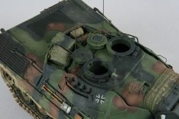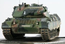 Erbauer: Henry Zierold Der Kampfpanzer Leopard 1A5 war die letzte Kampfwertsteigerung der Leopard 1 Familie bevor sie komplett vom moderneren Leopard 2 abgelöst wurden. Das Modell des Leopard 1A5 stammt von Takom im Maßstab 1/35. Gebaut wurde er weitgehend aus der Box. Einzig die Antennen stammen von Schatton Modellbau und etwas Draht kam zusätzlich zum Einsatz.