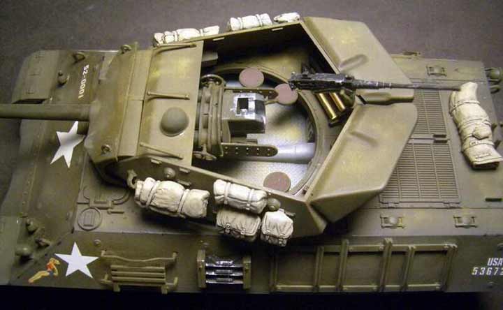 Es handelt sich hier um den ganz alten Bausatz des M-10 von Tamiya im Maßstab 1:35. Gebaut wurde aus dem Karton und bemalt mit Tamiya Farben. Die Decals stammen aus dem Dragon Wagon Bausatz selbiger Firma. Ich weiß zwar nicht ob es solche netten Damen auf Panzerfahrzeugen gab, aber ich fand es einfach mal nett.