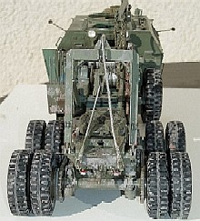 Das Modell von Tamiya wurde aus dem "Kasten" gebaut, ohne zusätzliche Ätzteile. Es passt alles prima ohne viel Nacharbeit. Die beiden Seilwinden sind ausgezeichnet nachgebildet, man muß nur den Bauplan gründlich studieren und öfter "trocken anpassen. Der sogenannte A-Mast ist beweglich gehalten, der M 26 kann dann auch mit dem Sattelauflieger verwendet werden. Das Fahrzeug wurde mit Lifecolor "gepinselt" und mit Pastellkreide verschmutzt.