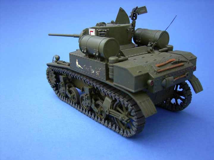 Dieser Bausatz wurde komplett aus dem Kasten gebaut. Einzige Ergänzung sind die Verzurrkettchen aus dem Schiffsmodellbau an den Fässern. Das Modell verfügt über eine recht schöne Inneneinrichtung, die für die A1-Version stimmig ist. Man hat die Wahl zwischen einer nach meinem Geschmack etwas steifen und schlecht zu verklebenden Vinyl-Kette oder einer dreiteiligen Einzelgliederkette (1xKettenpolster & 2xEndverbinder) aus Polystyrol. Die Scheinwerferschutzbügel entstanden in Eigenregie aus Verpackungsalu. Der Bau bereitet keine Probleme und es passt eigentlich alles fließend zusammen. Manche nennen so etwas „Tamiya-Qualität“.