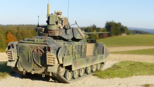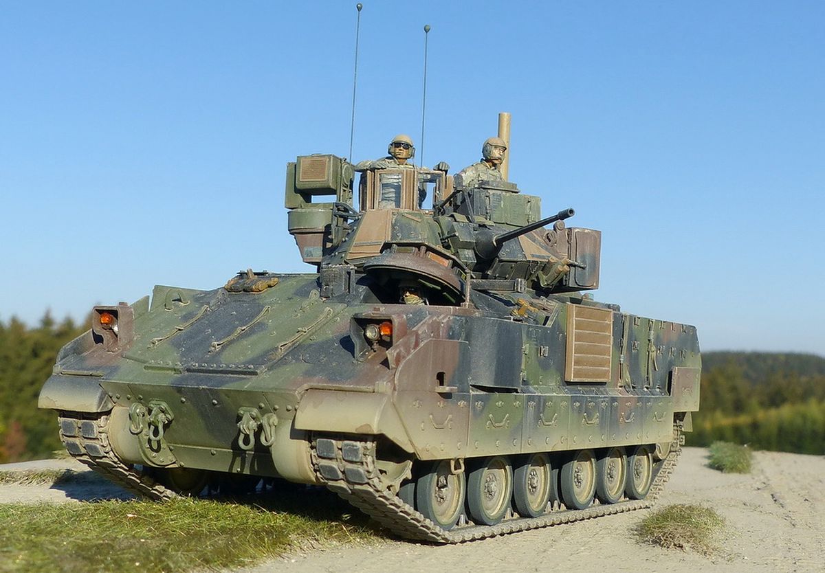 Bei diesem Modell handelt es sich um den M3A3 von Kinetic, im Maßstab 1:35. Das Modell macht einen recht guten Eindruck! Aber, um ein Depot - Fahrzeug von Grafenwöhr 2014-2016 darzustellen, mussten noch einige Details ergänzt werden. Diese kommen zum Teil aus der Restekiste, oder mussten nach Fotos selbst angefertigt werden. Die Besatzung, bestehend aus LEGEND und Alpine Figuren, wurden dem Modell angepasst und mit Tamiya- und Gunzefarben bemalt. Das Modell wurde ebenfalls mit Tamiya- und Gunzefarben mittels Airbrush freihand lackiert. Mit washings und Airbrush wurde das Modell dezent gealtert und verschmutzt.