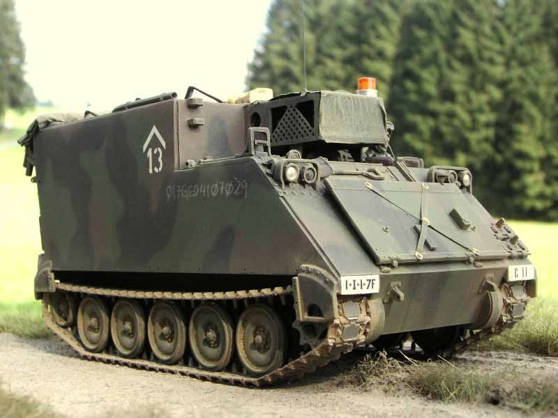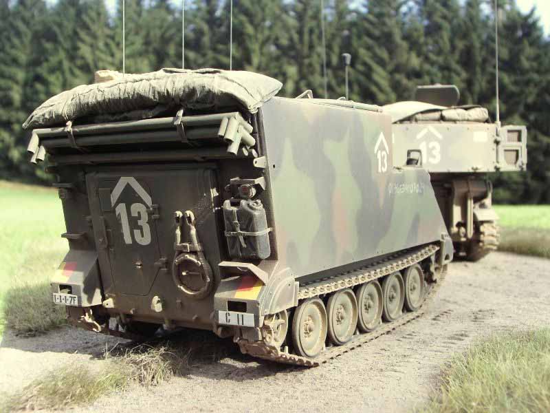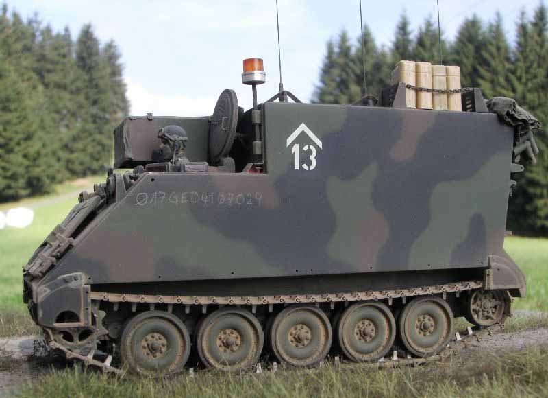 Zu dem Tamiya - Bausatz hab ich einen Ätzteilsatz von EDUARD und Friul Ketten verwendet, die Fahrerfigur stammt von Verlinden. Die Rundumkennleuchte u. Antennensockel sind "Eigenbau" eines Club - Kollegen von mir (T.Rossol), also nicht im Handel erhältlich! Das Modell wurde mit der 470er von Atzek u. Tamiyafarben lackiert, die Verschmutzung entstand wieder duch Tamiyafarben (Airbrush) u. Pigmenten von MIG - Productions, die ich farblich aufeinander abstimmte. Die Decals entnahm ich den Decalsätzen von TL. . Die Zeltplane u. die Abdeckung des Stromaggregates entstanden aus in Weißleim getränktem Papiertaschentuch
