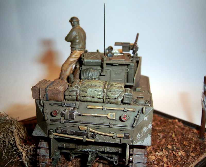 Außerdem noch einiger Kleinkram, Nieten aus Plastikrundmaterial, Gitterboden für den Staukorb am Turm, optische Faser als Antenne. Das Gepäck ist von PlusModel (Resin), Tamiya, Academy und Dragon, die wirklich tolle Figur ist von Ultracast mit einer Pistolentasche von Italeri.