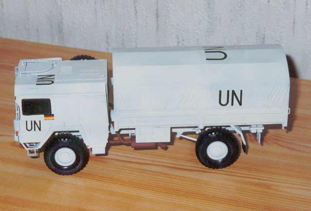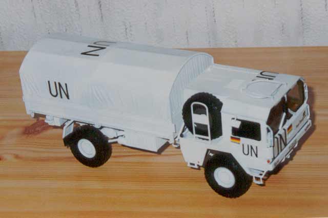 Rico Holschuh zeigt uns hier seinen Revell MAN 5 Tonner, lackiert in UN-Farben, wie er in Somalia gefahren ist. Auch hier habe ich direkt aus dem Kasten gebaut, mit allen seinen bekannten kleinen Fehlern.