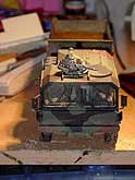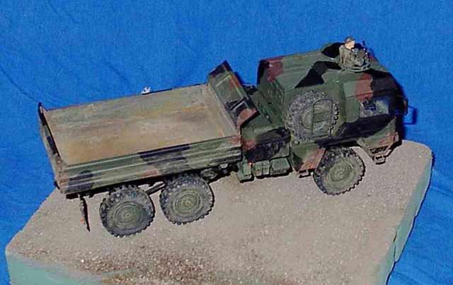 Der Bau des Fahrzeugs war eigentlich problemlos. Die bekannten Fehler der Revell Tonner müsste ja jeder kennen der sich für die interresiert. Besonderes Augenmerk musste lediglich auf die Staukästen hinter dem Fahrerhaus gerichtet werden. Da der Kipper-Umbausatz nicht speziell auf den Bundeswehr-Kipper ausgelegt ist, mussten die Seitenteile der Ladefläche gekürzt und das Hinterteil der Kippermulde nach hinten gebogen werden. Die Staukästen baute ich aus Winkelprofilen, Holz und Plastik-Sheets. Teile einer alten Fernsteuerungsantenne dienten als Hydraulikstempel.
