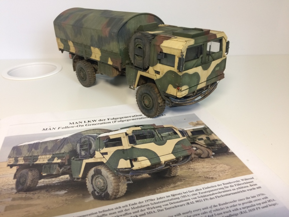 Im Tankograd Heft über Wüstentarnungen sind eine vielzahl von Fahrzeugen in Umtarnfarben abgebildet, sodass ich nicht an einen MAN 5t mit MSA Kabine vorbei kommen konnte, der im PRT Kunduz eingesetzt war.