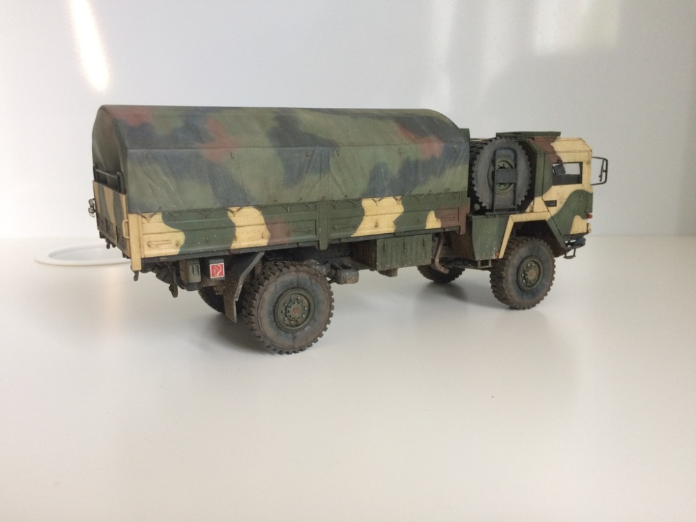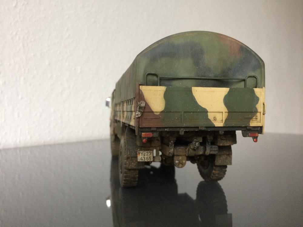 An diesem Originalfahrzeug wurde das schwarz des NATO Standardanstrichs scharfkantig mit sandgelber Farbe überstrichen, allerdings wurde die ausgeblichene Plane nicht umgetarnt und bildete einen schönen kontrast der mir sehr gefiel.
