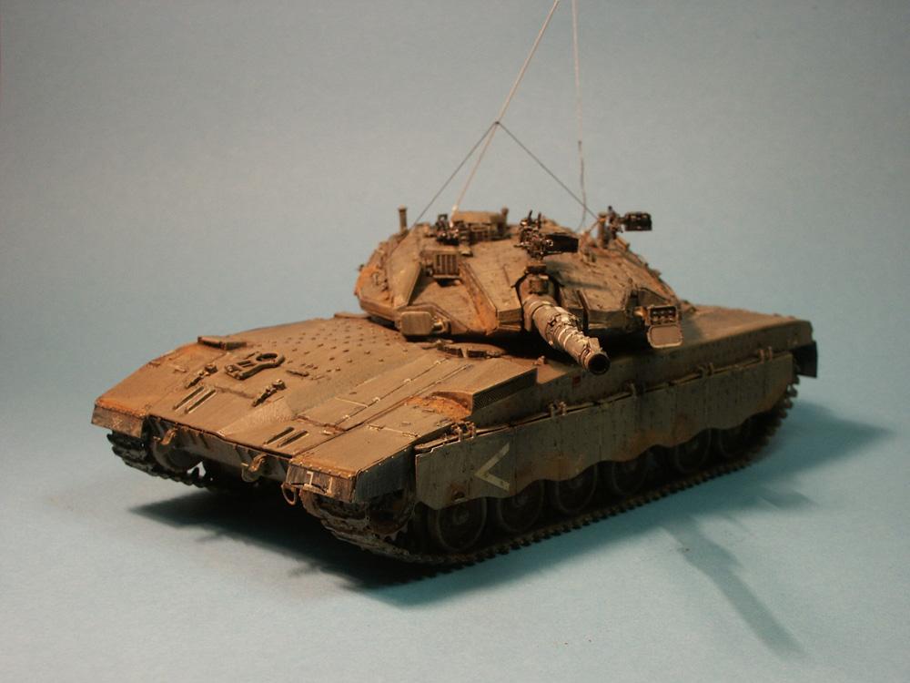 Erbauer: Olli Latzel Der Merkava III LIC ist das Exemplar von HobbyBoss (Hobby Boss 82476). Er wurde aus der Schachtel gebaut. Einfallsreichtum war beim Ablängen des Ball-and-Chain-Systems gefragt als auch bei der Antennenfertigung. Hier hätte ich bei dem Bausatz erwartet, dass anstelle mancher auch unnötiger PE-Teile ein paar Antennen beiliegen. Mein Exemplar wurde in Sinaigrau lackiert und anschließend eingestaubt, Golan-like gab es noch etwas Pigmente dazu.