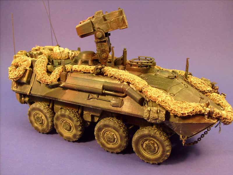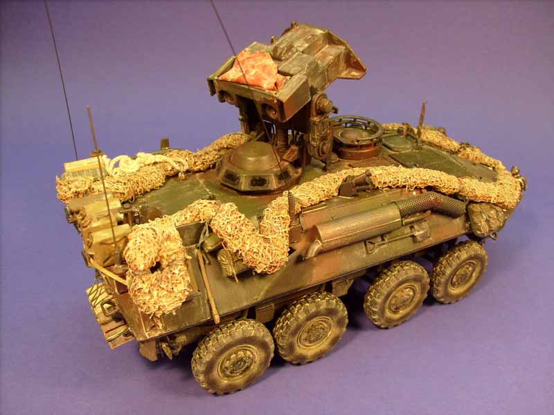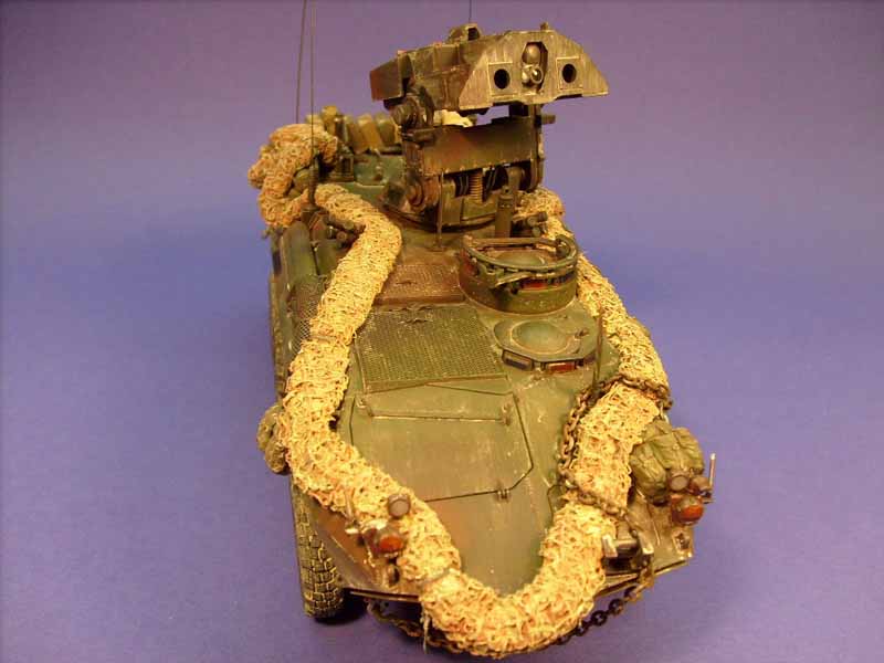 Mein Modell ist von Trumpeter und stellt ein AntiTank(Tow Werfer)Fahrzeug der US Marines in der klassischen NATO Tarnung dar. Es wurde aus der Box(OOB)gebaut; mit leichten Verbesserungen an Kleinteilen am Fahrzeug und mit verschiedenen Ausrüstungsteilen von Tamiya bestückt. Lackiert wurde mit Acrylfarben. Danach wurde es mit Pigmenten leicht verstaubt.
