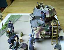 Die Figuren des Generals, und des Offiziers auf dem Panzer stammen aus dem Italeri-Bausatz, die gebückte Figur ist von Academy, die stehende ? und der Fahrer ist aus einem alten Tamiya Tiger I Bausatz.
